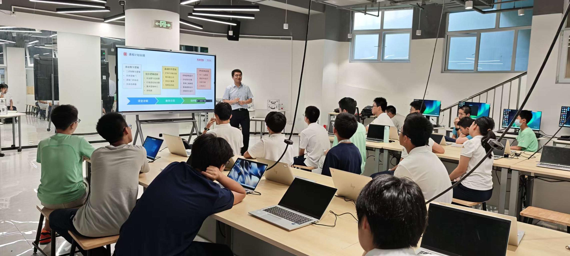 北京十一实验中学副校长、课程研究院院长汪花介绍,当前科技革命与产业变革日新月异,芯片作为信息技术产业的核心,是支撑经济社会发展和保障国家安全的战略性和先导性产业。但在中小学教育阶段,学生接触芯片底层技术的机会极少,多数时候只能被动使用电子产品,对其核心原理知之甚少。这种“技术认知断层”,不仅不利于学生理解科技本质,会在一定程度上限制他们对科技领域的探索热情。高一作为学生世界观、价值观和学科兴趣逐步成型的关键时期,此时引入CPU设计课程,能让学生跳出“使用科技”的浅层认知,进入“理解科技、创造科技”的深层维度,填补这一认知空白。