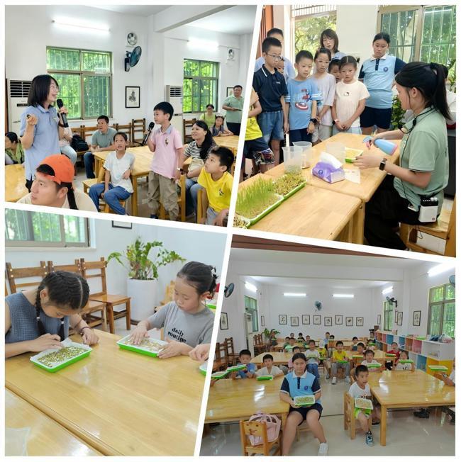 当“寻宝”的兴奋还未散去,孩子们又带着好奇走进“生态实验室”,化身小小科学家,亲手培育芽苗菜。他们用简单的工具播种、喷水、观察、记录,捧着自己的种植盘,眼神里充满期待。就这样,科学的种子也在孩子们心中悄然发芽。