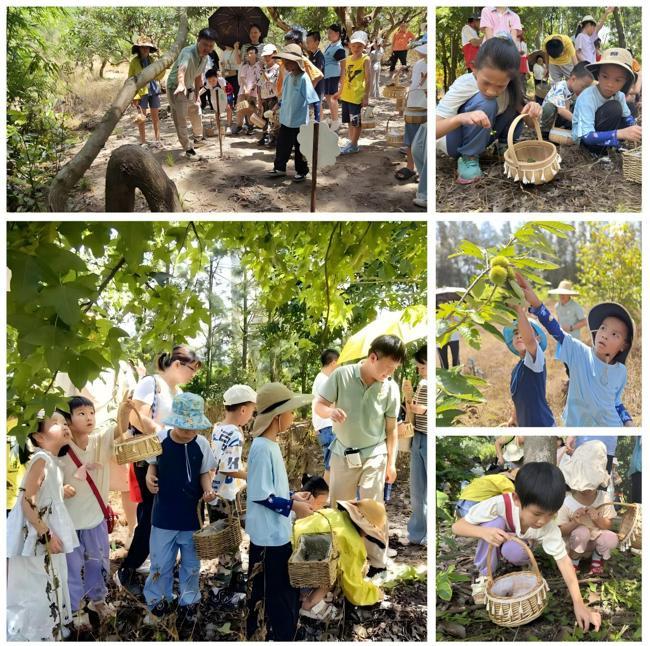 随后,大家跟随自然导师的脚步,走进树木园,孩子们兴奋地穿梭在林间小径上,像一群小小的探险家,开启了一场别开生面的“种界寻宝”之旅。“老师,这个种子是红色的,像小宝石一样!”此起彼伏的惊叹声中,孩子们弯腰拾起地上的果实和种子,仔细对比、辨认。有的蹲在树下翻找,有的踮起脚尖观察低垂的枝头,还有的互相分享新发现的“宝藏”。这场寻宝不仅让孩子们认识了植物生命的奇妙载体,更在奔跑与发现中,播下了探索自然的种子。