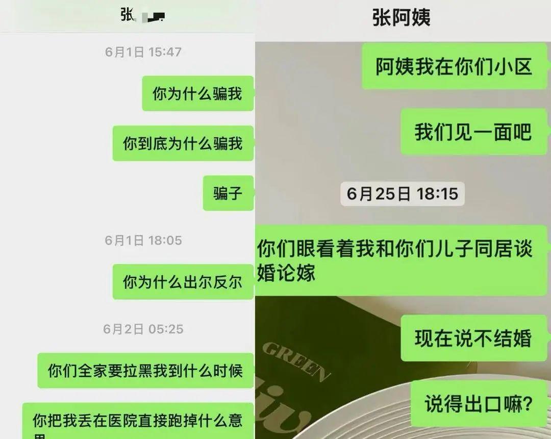 随着她的病情稳定,张某某一家的态度发生了转变。6月下旬,白女士发现对方微信不回、全家失联。为了寻求说法,她在护工陪同下坐火车赶到张某某家楼下,但仍未得到回应。“我在微信上问他妈妈能不能让我见他一面,他已经很久没回我消息了。当时我突然截瘫,又被抛弃,整个人都崩溃了。张某某对我来说就像是救命稻草,我只想找这个最熟悉、最信任的人。”白女士说。